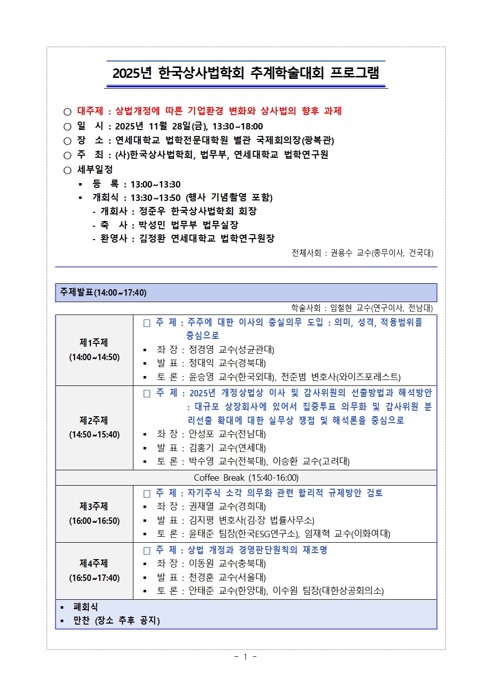 ① [학회 ]는 개인정보 처리에 관한 업무를 총괄해서 책임지고, 개인정보 처리와 관련한 정보주체의 불만처리 및 피해구제 등을 위하여 아래와 같이 개인정보 보호책임자를 지정하고 있습니다.
