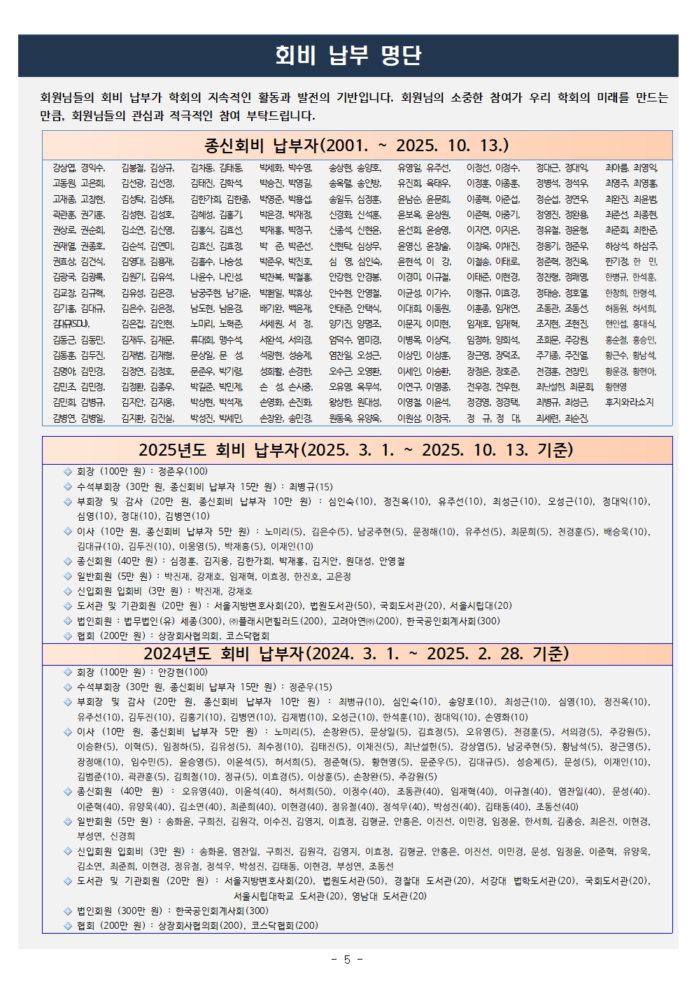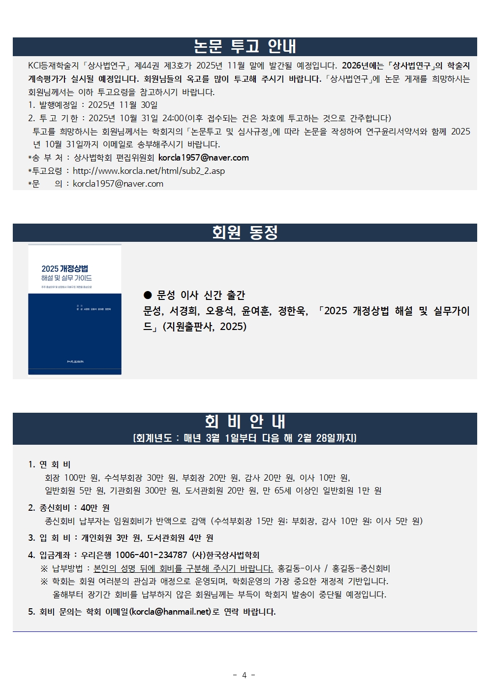 (사)[한국상사법]학회](이)가 개인정보 보호법 제32조에 따라 등록․공개하는 개인정보파일의 처리목적은 다음과 같습니다.